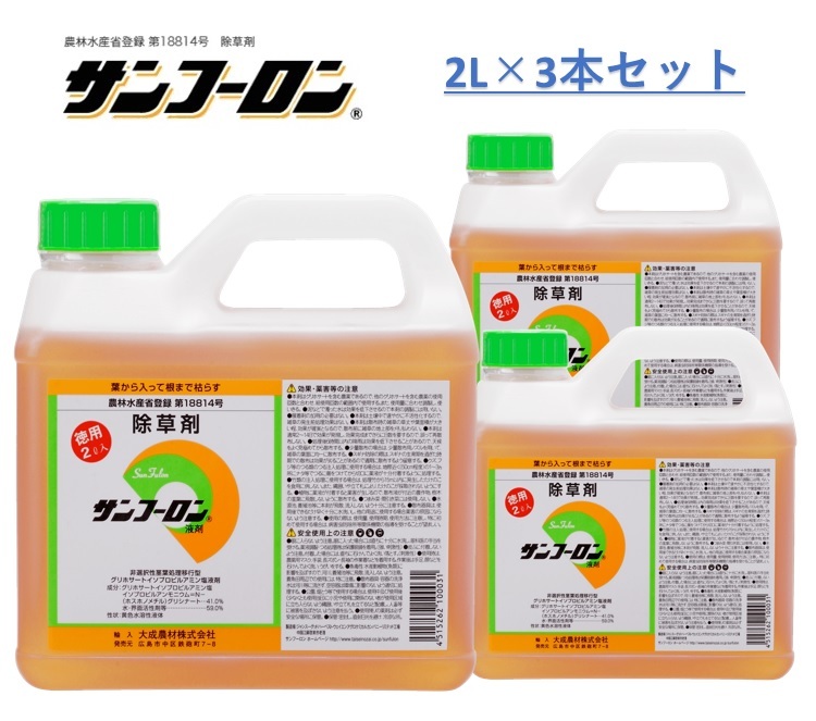 - 【3本セット】サンフーロン液剤 2L 大成農材 根まで枯らす 除草剤 農薬 除草 農耕地 グリホ 竹 笹 スギナ ドクダミ