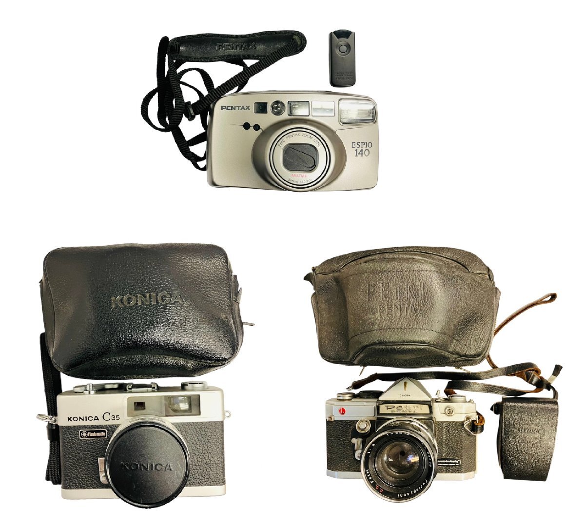 - qoo.ZDQ05 フィルムカメラジャンク品 3点まとめ売り Petri PENTA/KONICA/PENTAX セコニック露出計付き 難あり アンティーク