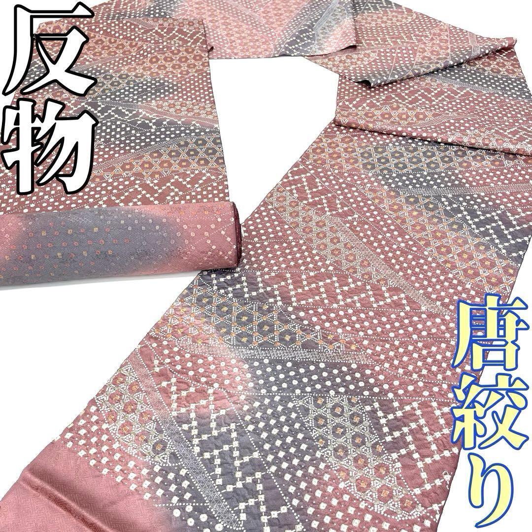 - 【着物と帯 時流】T25938◆正絹 反物◆唐絞り 丹後ちりめん 未使用品 着尺