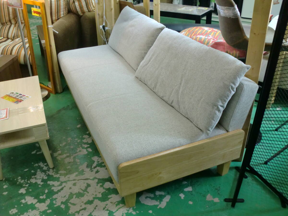> ♪♪【7H22⑦ak】モダンデコ 3人掛けソファベッド リクライニング グレー 天然木フレーム 北欧 幅186cm♪♪