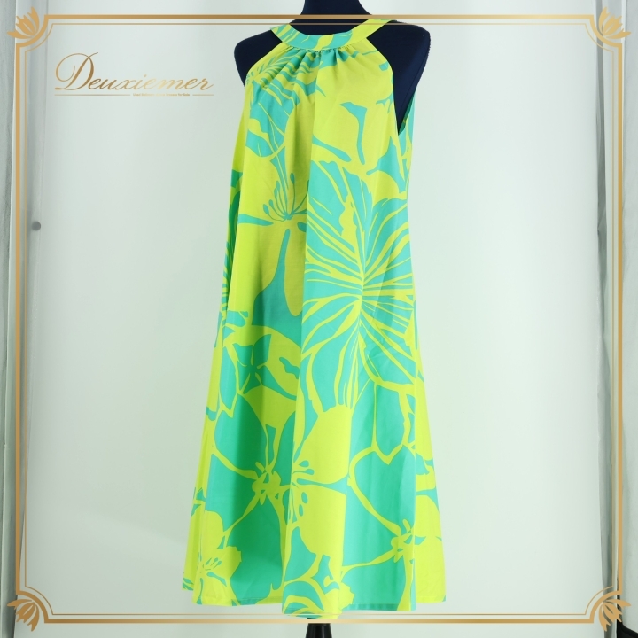 - フラダンス 衣装 ワンピース ドレス ブルー系 フラ ダンス 花柄 Leimeria 袖なし ハワイアン 鮮やか 軽い アロハ 日本製 華やか 明るい
