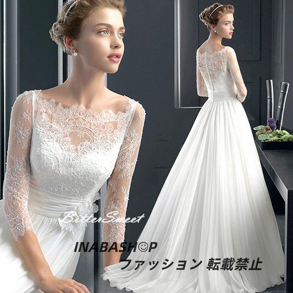 > ウェディングドレス Aライン ウエディングドレス トレーンドレス 二次会ドレス 花嫁ドレス 二次会 花嫁 ドレス白 ウェディング袖あり結婚式