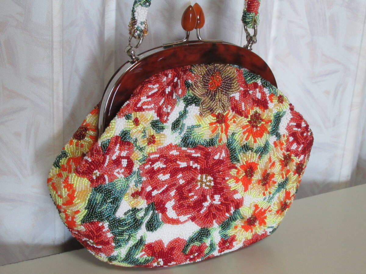 - R7 08★レトロ アンティーク 総ビーズバッグ 持ち手もビーズ 中古