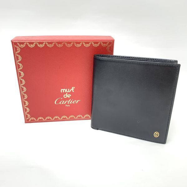 - D1097 美品! 格安! Cartier カルティエ パシャドゥカルティエ 二つ折り財布 レザー ブラック