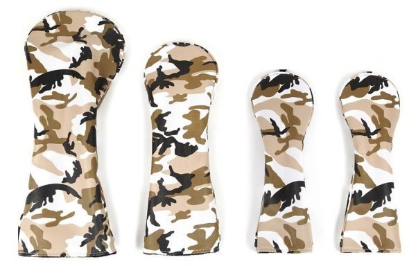- 【未使用】 ゴルフヘッドカバー4個セット 迷彩茶色 ウッドカバーセット DR1.FW1.UT2