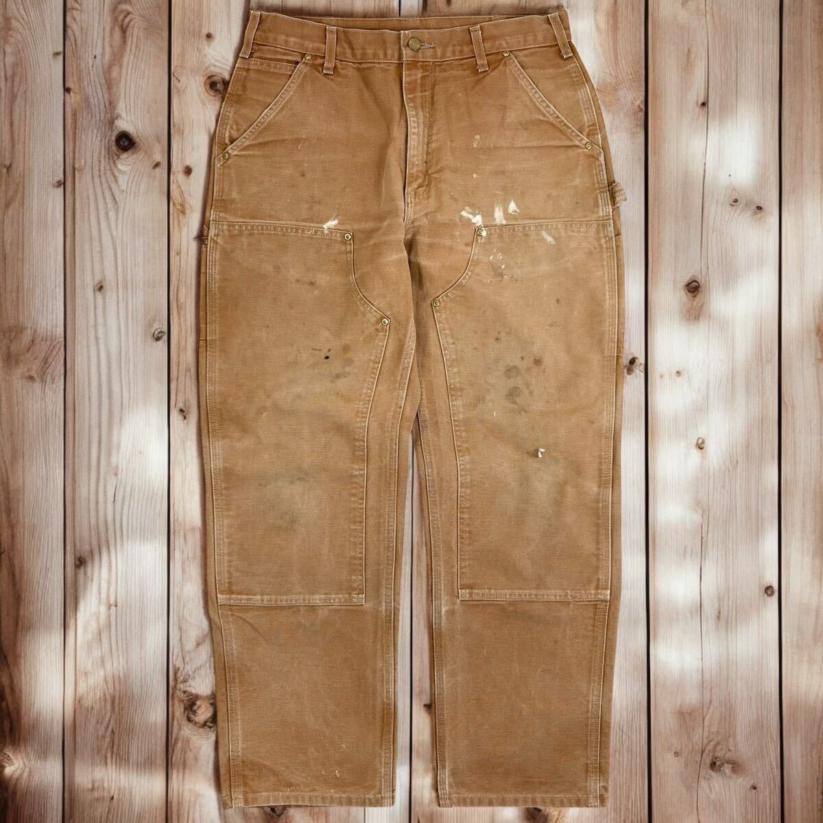 - 【USA製】 Carhartt カーハート アメリカ製 ダブルニー ブラウン ダック ワーク カーゴ ペインターパンツ ストリート スケボー W34 L32
