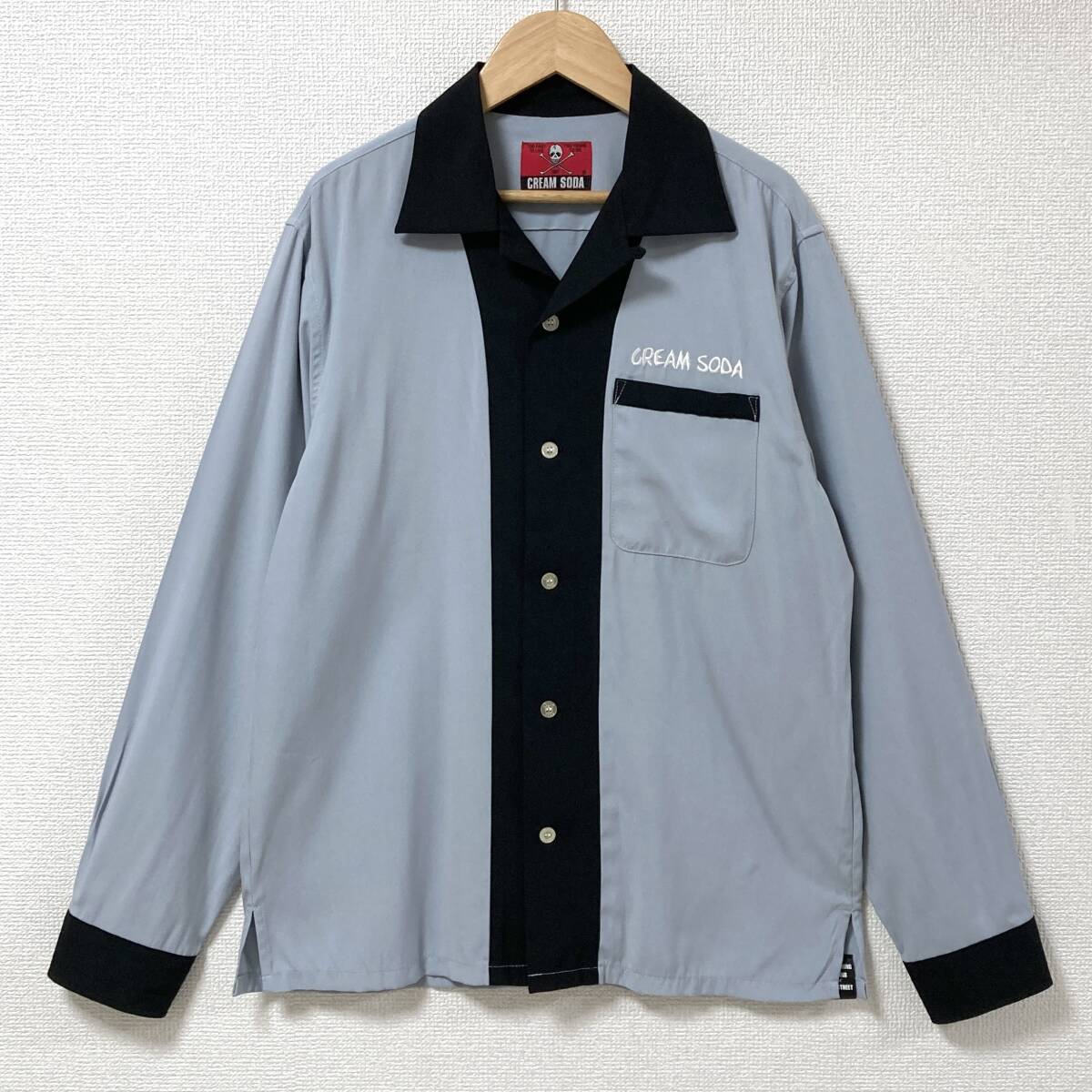 - CREAM SODA レーヨン ポリ 長袖 オープンカラー シャツ ツートン グレー黒 Mサイズ クリームソーダ 開襟 50s ロカビリー 5080116