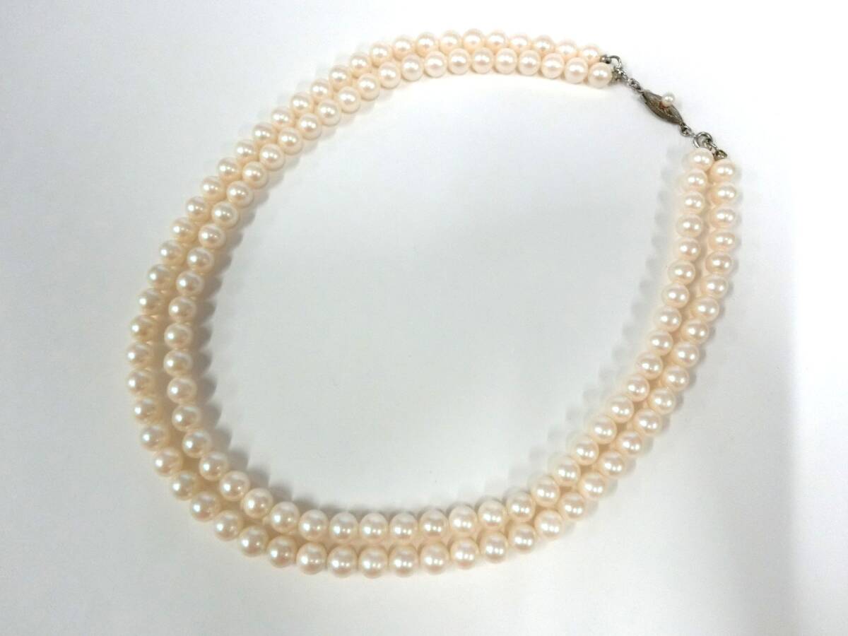 - 45553◆SILVER留め具 2連パールネックレス 6.5mm