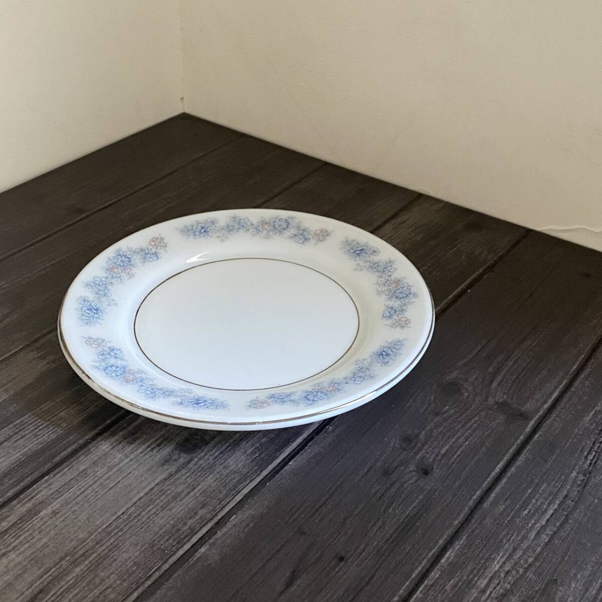 - ◆台湾レトロ◆ミルクガラス◆ケーキ皿 丸皿 花柄 水色◆台湾食器◆ヴィンテージbia88239b