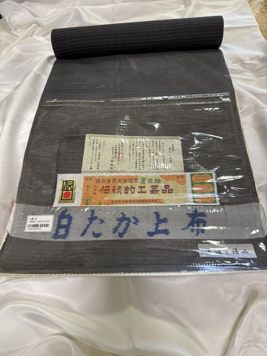 > 希少 伝統工芸証紙付き小松織物工房5代目 小松紀夫白たか上布白鷹 米沢永井白たか湯通し済み反物正絹12.5m新品未使用 置賜紬 絹織物