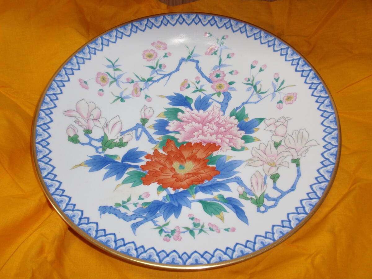 - 有田焼【香蘭社】宮内庁御用達 フランクリン画廊 限定【玉堂富貴】飾皿★木箱付き★皿立てつき