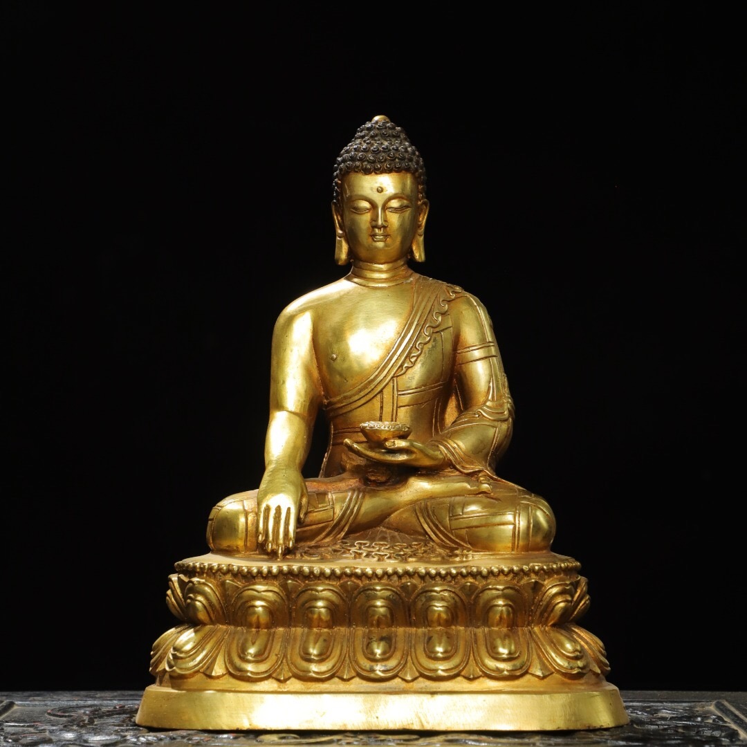 - 『清・銅製・塗金・阿彌陀仏・密宗密教・蔵伝仏像・供養品』極細工 置物 古賞物 中国古玩 中国古美術