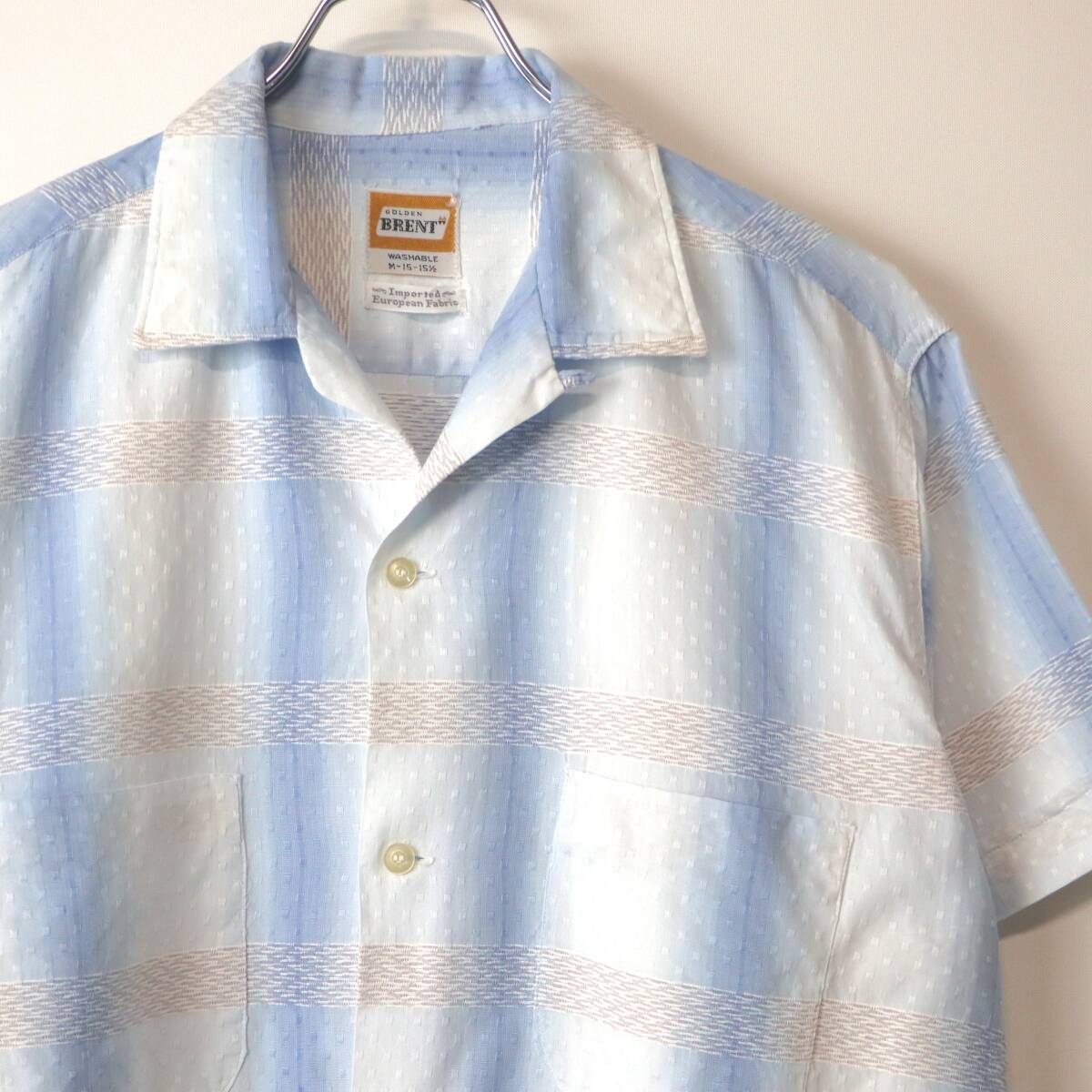 - シャドウ 60s BRENT Cotton Open Collar Shirt ブレント コットン 開襟 半袖 シャツ 希少 ヴィンテージ vintage 50s 絣 オンブレ レーヨン