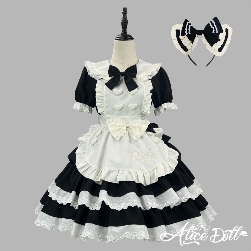 - クラシカル メイド服 ワンピース エプロン カチューシャ付き 半袖 ドレス ロリータ ゴスロリ 甘ロリ 制服 清楚 かわいい レディース