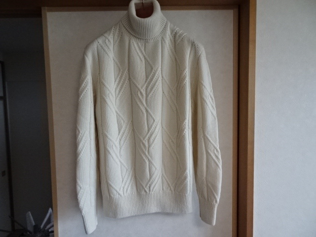 - 新品ロロピアーナ・厚手カシミア100%・タートルネックケーブル編み二ット・カラーアイボリー・50