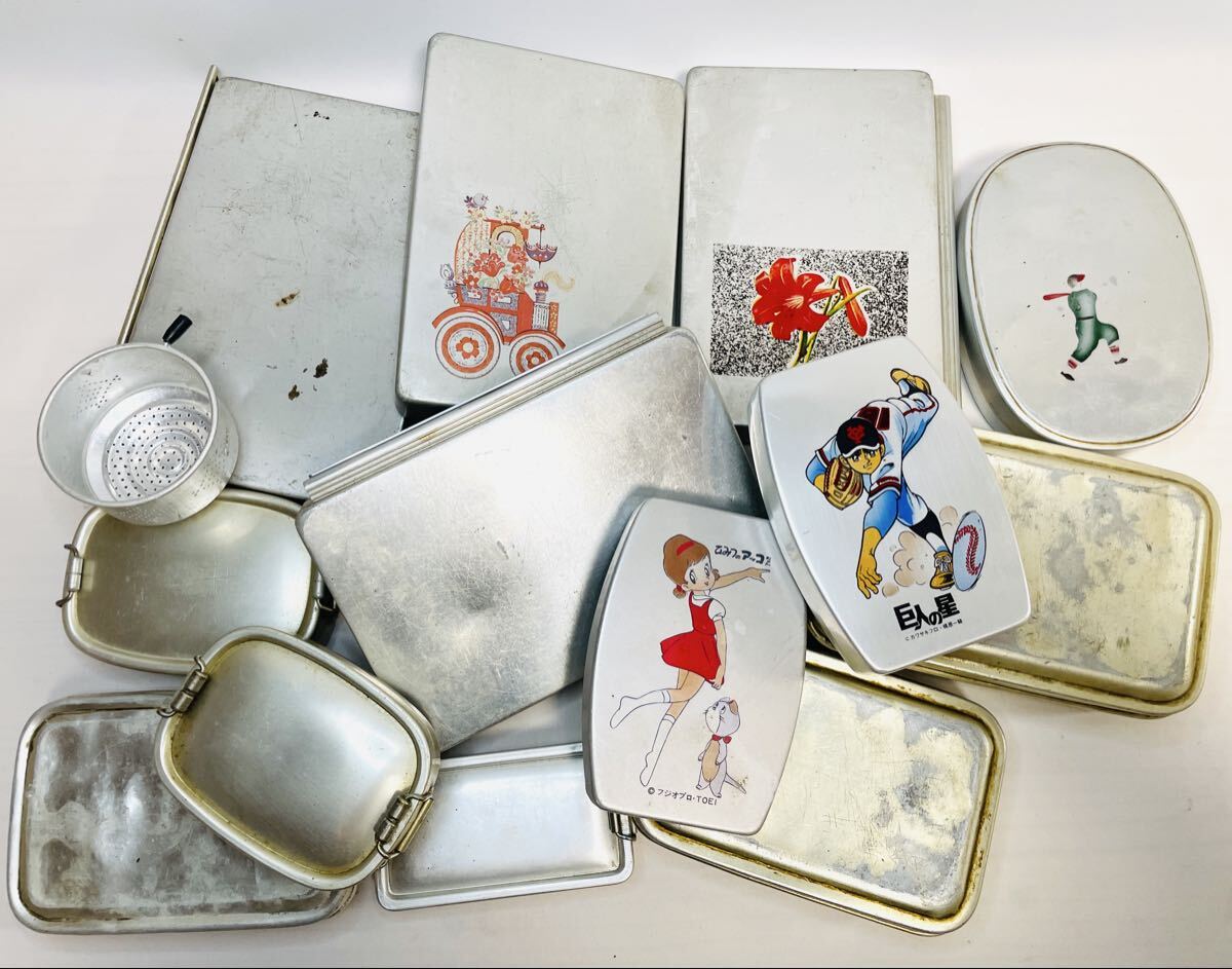 - [No.S0191]アルミ缶 アルミ弁当 レトロ 当時物 昭和 弁当箱 箱 野球 アルミニウム 古い ひみつのアッコちゃん 巨人の星 いろいろ