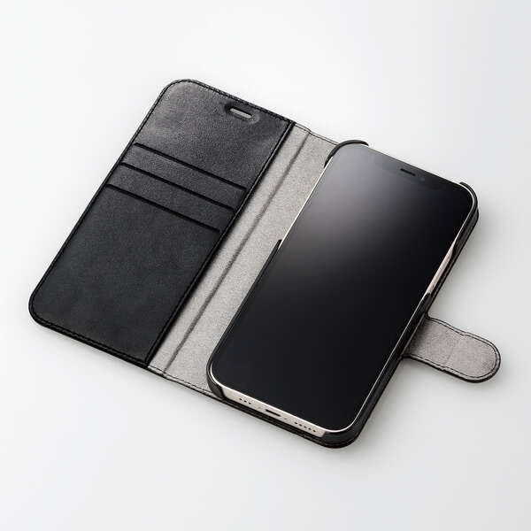 - エレコム iPhone 12 /12 Pro 手帳型ケース カバー ソフトレザー ブラック マグネット ブラック 薄型 磁石付 カードポケット Qi充電対応 216
