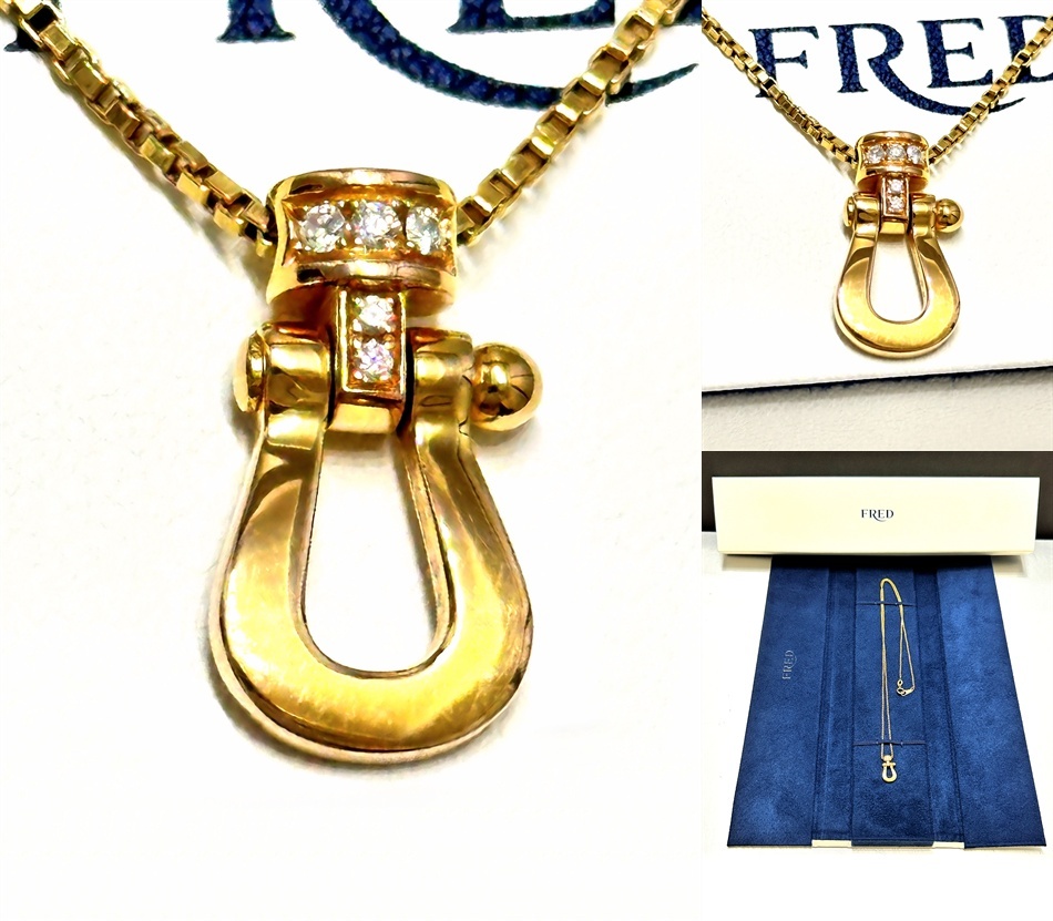 - 美品 FRED フレッド Force フォース10 ダイヤモンド ペンダント ネックレス K18 YG ケース 男女 ベネチアン イエローゴールド