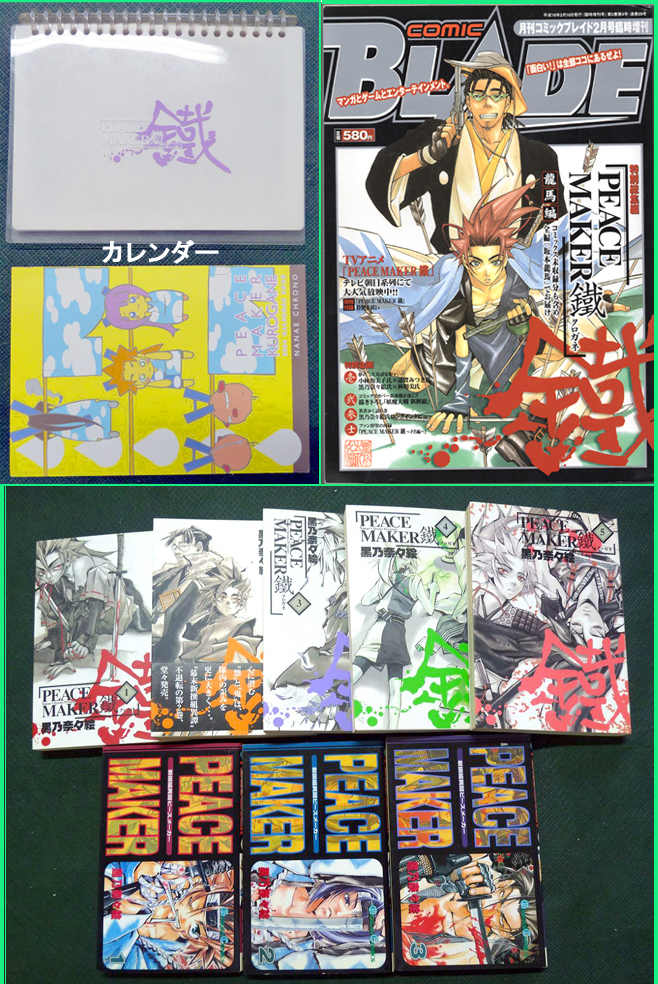 - 黒乃奈々絵 9冊+1「新撰組異聞PEACE MAKER 1~3巻」「PEACE MAKER 鐵 1~5巻」コミックブレイド特別総集編 +2004年クリアカレンダー