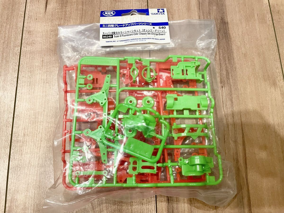 - ★送料無料★ミニ四駆 スーパーⅡ蛍光カラーシャーシセット(オレンジ グリーン)タミヤ グレードアップパーツ 新品未開封 95248
