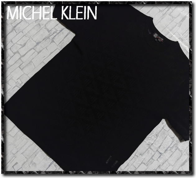 - 美品!!★MICHEL KLEIN homme ミッシェルクランオム メッシュジャガードカットソー 黒★