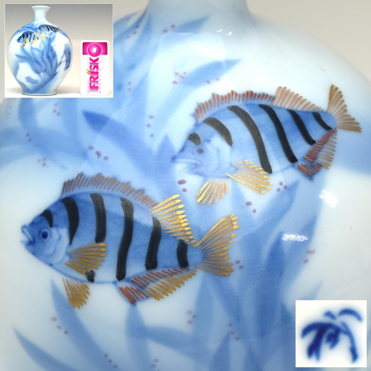 - 香蘭社 「魚図小花瓶」 時代 高さ11,5cm 本物保証 Q2171【趣楽】