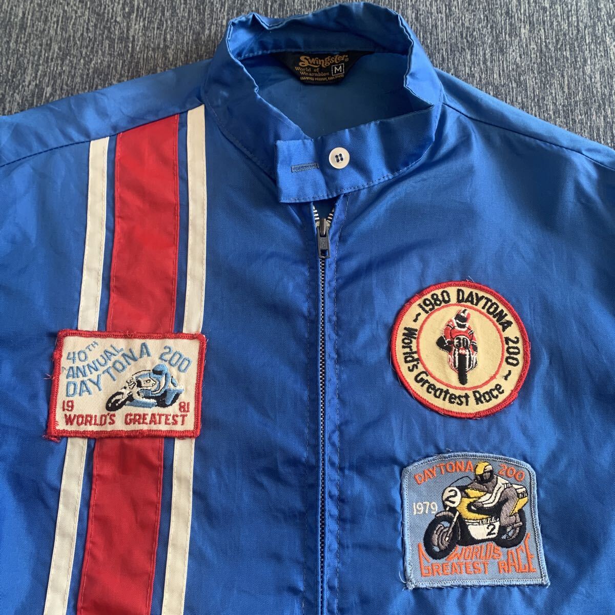 - 1970〜80s アメリカ古着 Swingstar製ジャケット Mサイズ DAYTONA 200 ケニーロバーツYZR500TZデイトナRZ250額装ガレージスウィングスター