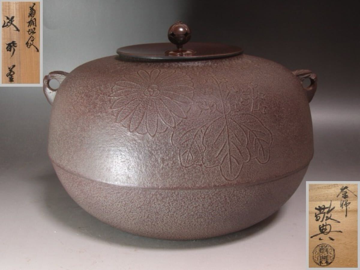 - ★ 高橋敬典 菊桐地紋政所釜 裏千家 十五代 鵬雲斎の花押がございます★x397