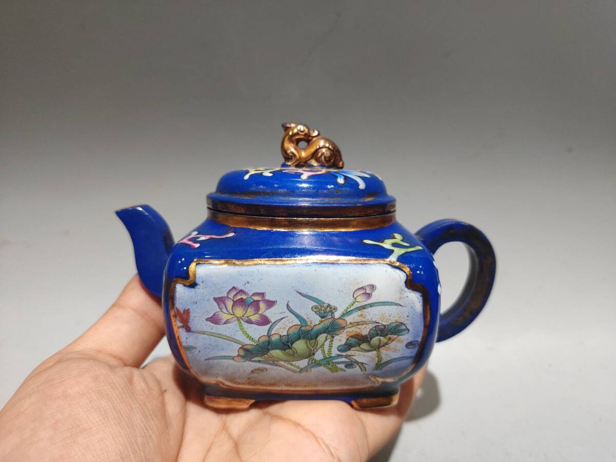 - 【超珍館蔵】紫砂壺 描金彩繪壺 金鼎商標款 紫泥 茶具 茶道品 置物 賞物 古賞物 古董品 古美術品 時代物 旧家蔵出 稀少珍蔵品