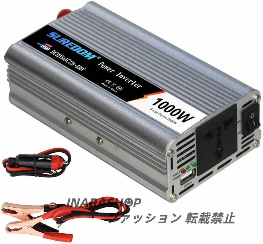 > インバーター、1000W インバーター12V DC to 110V 、ラップトップ、スマートフォン 停電時の家電製品用2.1A USBポート、12Vto110V-1000W