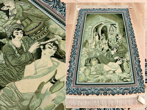 > 魁◆最高級厳選作 本物保証 未使用保管品 ペルシャ絨毯 タブリーズ ウール&シルク 絵画絨毯 156×100㎝ 細密手織り絨毯 ma