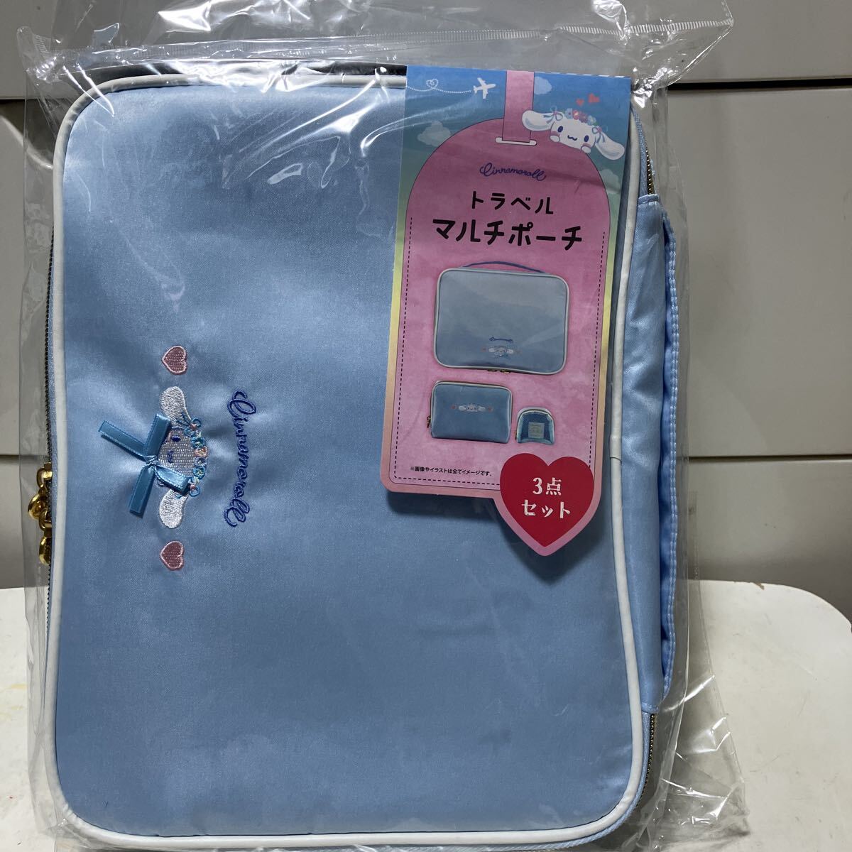 - 新品!シナモロール ポーチ 3点セット トラベル マルチポーチ サンリオ正規品 コスメポーチ ガジェットポーチ 旅行 大容量