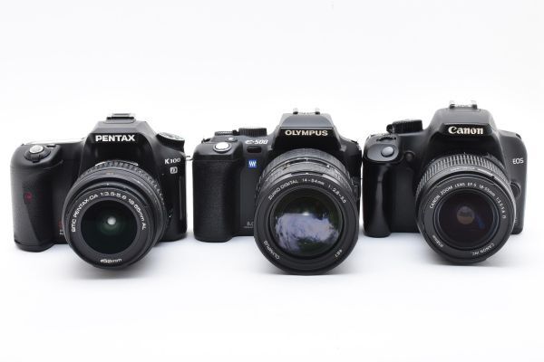 - Canon Kiss F 18-55mm OLYMPUS E-500 14-54mm PENTAX K100D 18-55mm レンズキット 3台まとめ 動作未確認ジャンク #M97A1493
