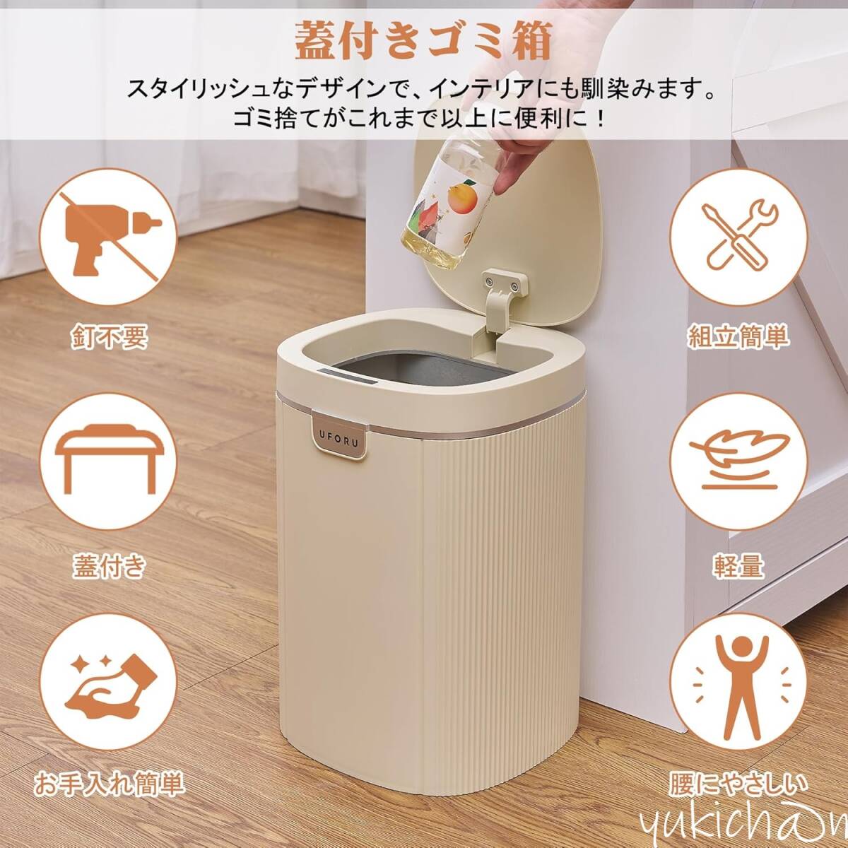 - ゴミ箱 18L 自動開閉式 ミルキーホワイト 自動ゴミ箱 電池式 ふた付き 感応式自動開閉 静音 非接触式 防水 衛生的 防臭