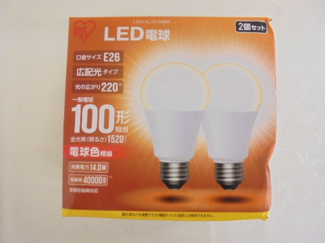 - 【KCM】□JHKZ-93★新品・箱傷み★アイリスオーヤマ 調光器非対応LED電球 E26口金 100形相当 2個入 電球色相当 LDA14L-G102BK