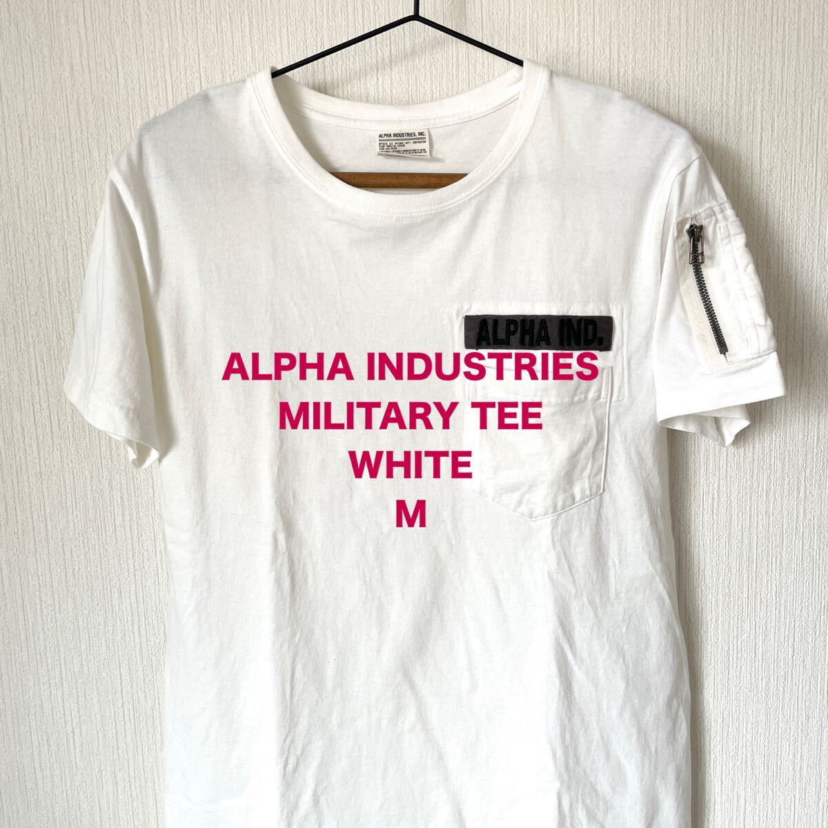 - 【ALPHA INDUSTRIES】アルファインダストリーズ ポケ付きTシャツ ホワイト 白 M 夏服 半袖 ミリタリー アメカジ メンズ 匿名配送