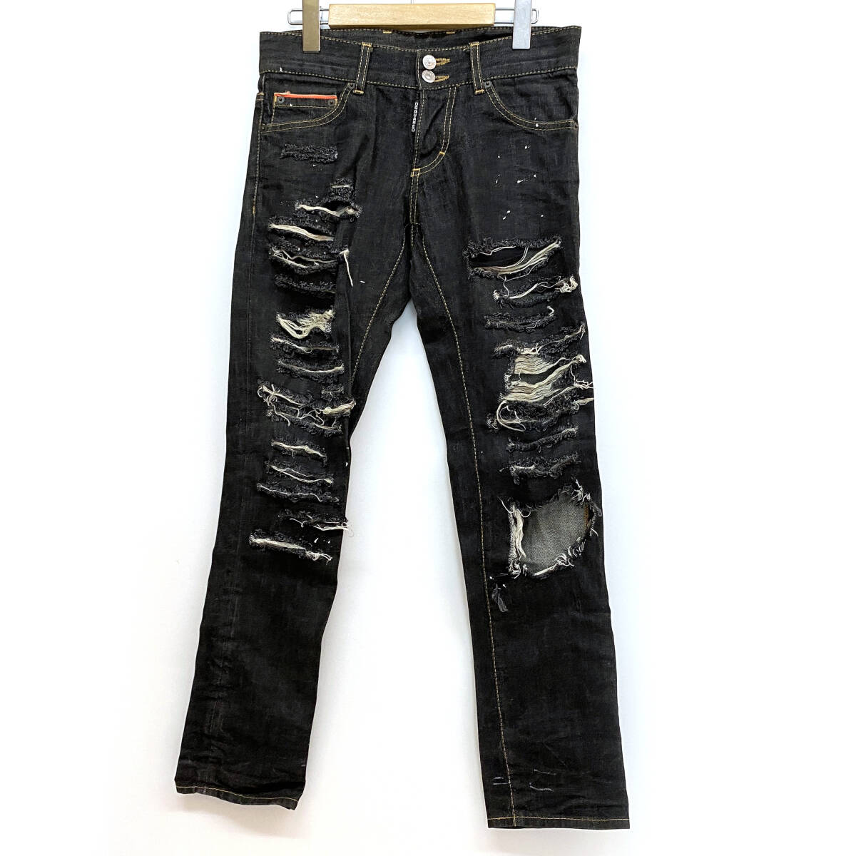 - tu135 DSQUARED2 ディースクェアード デニムパンツ ジーパン ジーンズ シンチバック ペイント サイズ42 ブラック メンズ ※中古