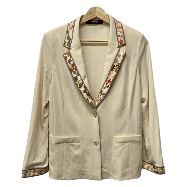 - レオナール LEONARD サイズL - ベージュ×ライトグレー×マルチ レディース 長袖/カンカン素材/肩パッド/春/秋 美品 ジャケット
