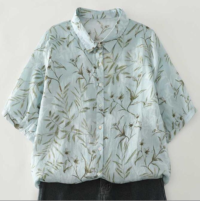 - 新入荷爽やか チュニック ワイシャツ トップス 花柄 麻100% ゆったり オシャレ フリーサイズ ナチュラル