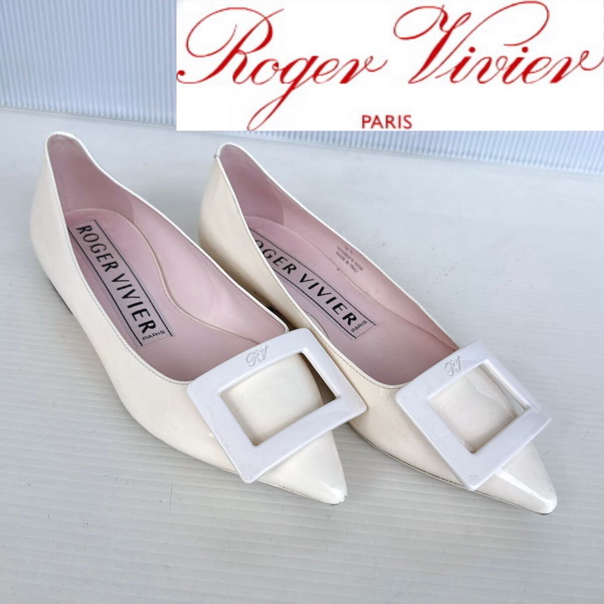 > Roger Vivier ロジェヴィヴィエ スクエアバックル ポインテッドトゥ パンプス フラットシューズ ミュール バレリーナ 34 靴 レーディス 白