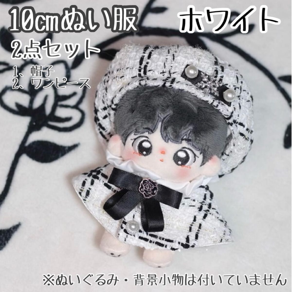 - ②白 10cm ぬい服 ツイード 帽子&ワンピース 2点 着せ替え ぬい 衣装 ぬいぐるみ マスコット ぬい活