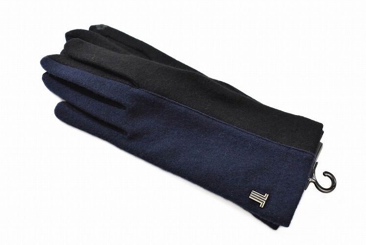 - ランバン コレクション 手袋 レディース ブランド バイカラー スマホ対応 紺 黒 21-22cm