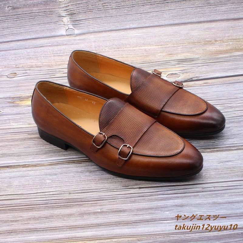 - 定価8万◆ローファー スリッポン 最高級 牛革 ビジネスシューズ 手作り 本革 レザーシューズ 個性 メンズ 通勤靴 結婚式 ブラウン 25.0cm