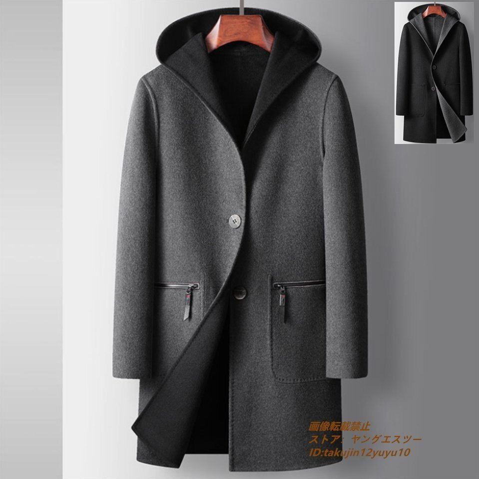 - 定価15万 メンズコート ロングコート フード付き ウールコート 紳士 ビジネスコート 厚手 リバーシブル チェスターコート グレー L