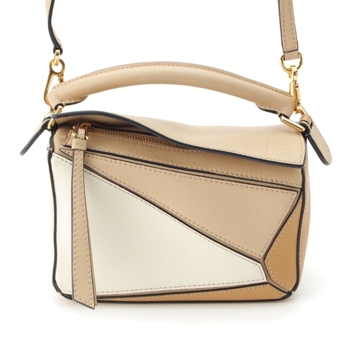 - ロエベ レザー ミニ パズル ショルダーバッグ ブラウン ベージュ【中古】