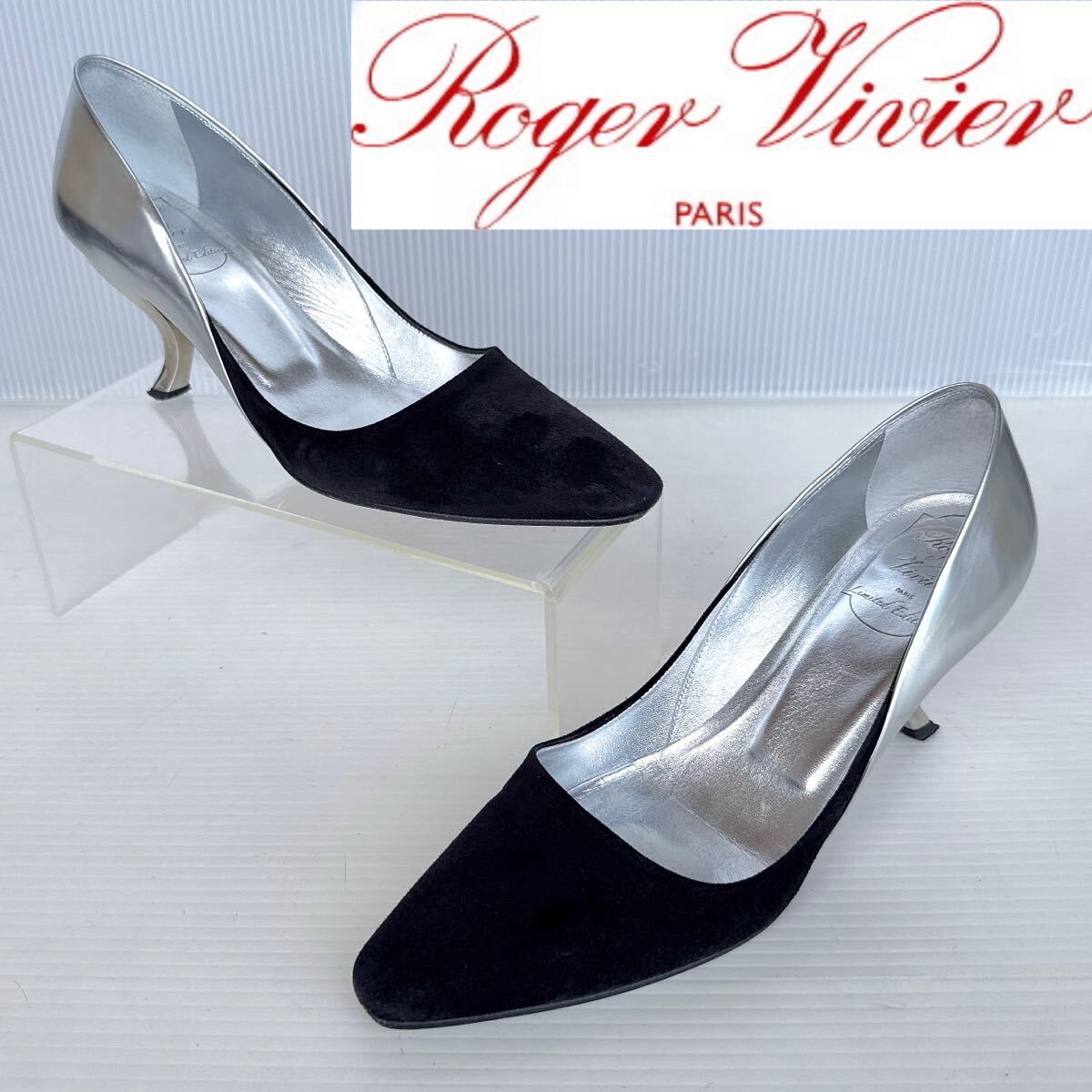 > ROGER VIVIER ロジェヴィヴィエ メタルピンヒール ポインテッドトゥ パンプス フラットシューズ サンダル 35 レーディス シューズ 靴 黒