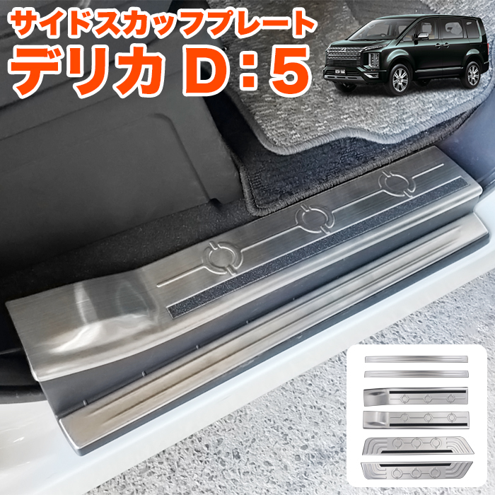 - 【メタリック】 デリカD:5 後期 専用 サイド スカッフプレート サイドシル プロテクター ステップ ガード 傷防止 メッキ FJ5683-mat