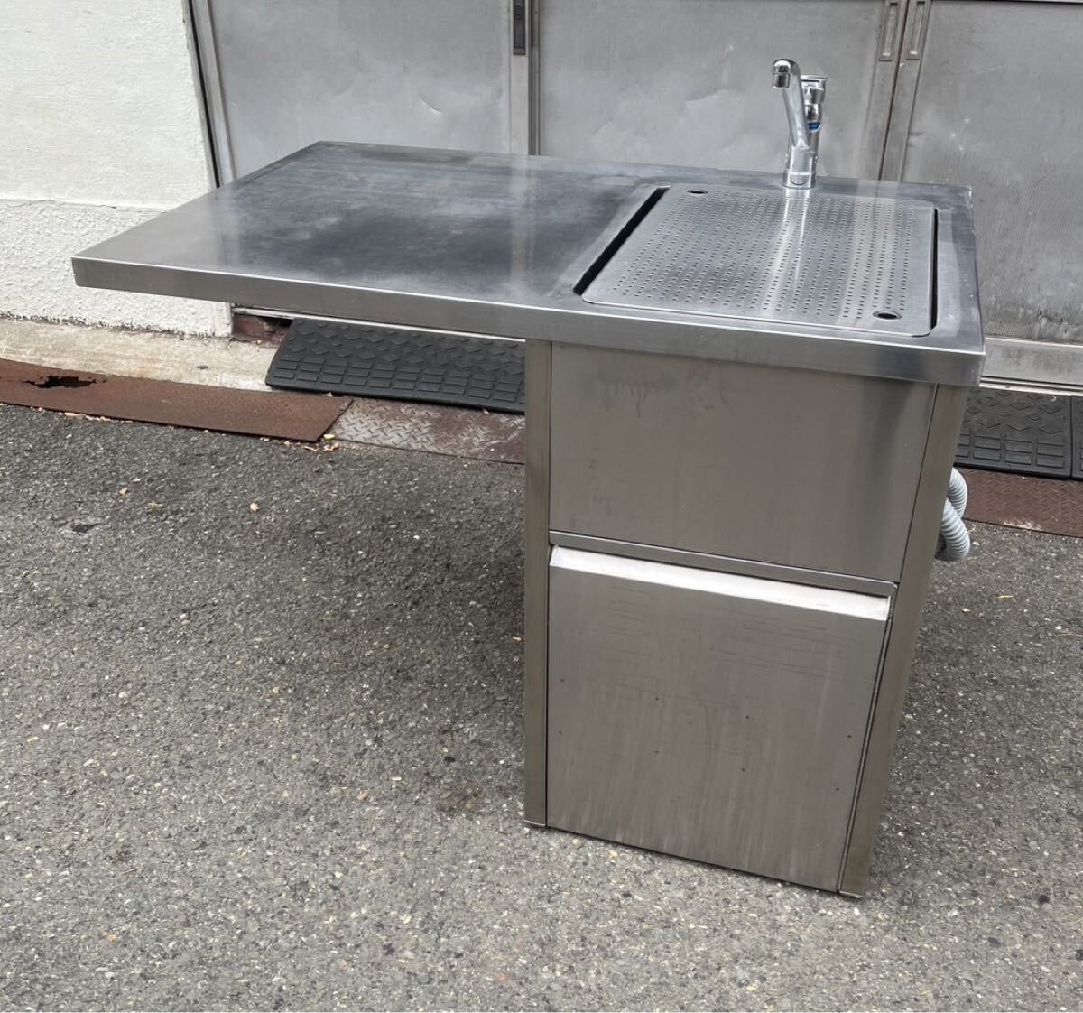 - 特注品 業務用 台付き 1槽シンク 混合水栓 蛇口付き 幅1120×奥735×高さ840(mm) 一層シンク 一層 1層 一槽 店舗 厨房機器 扉付き 大阪