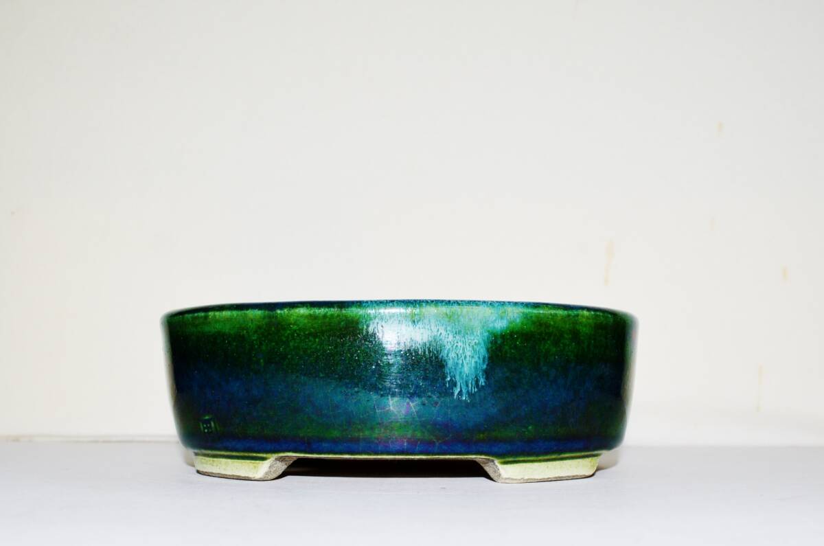 - 平安東福寺の様な釉味・人気品薄和鉢作家 「寺畑さとみ(加藤里美)」 寺畑陶園 窯変織部釉に白釉 切立小判形の鉢