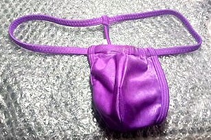 > トップモードジャパン製品、メンズ、ビキニ、フロントポーチ江戸紫ラメコーティング、立体的フルシーム、SAMPLE、素材不明、М~Lサイズ、